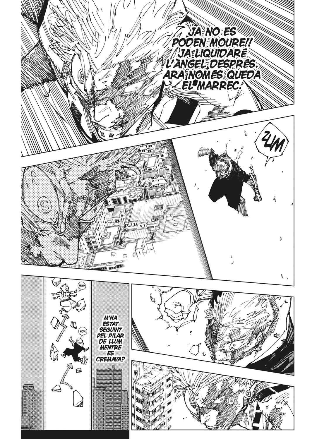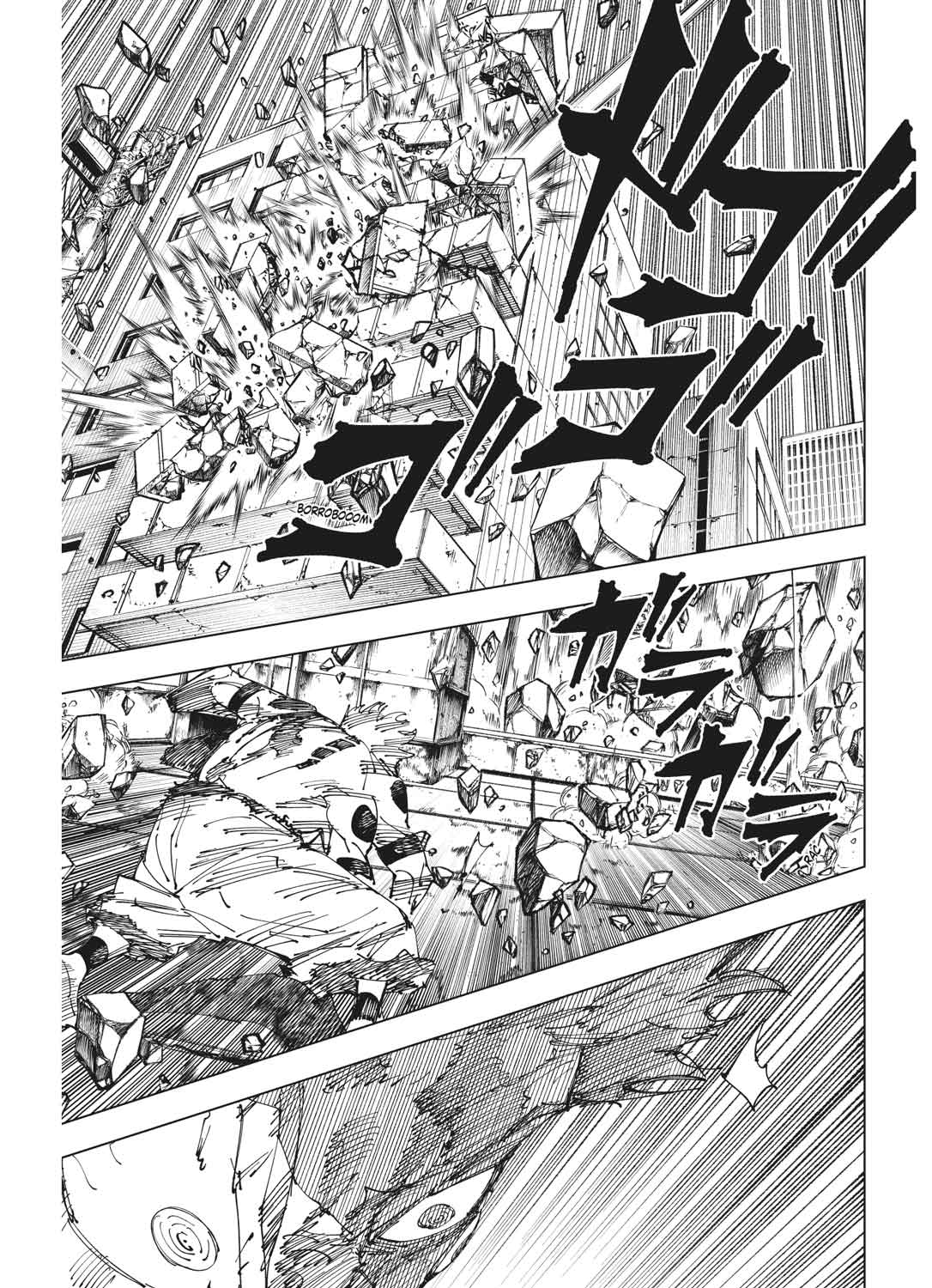 Amb la intenció de separar en Sukuna d’en Fushiguro a la força llançant la tècnica “Desbaratament” a la frontera de les seves ànimes, l’Itadori expandeix el seu territori... i gràcies a l’atac pressiona en Sukuna!! Quin serà l’últim as a la màniga que marcarà el punt final d’aquesta batalla contra les malediccions?!