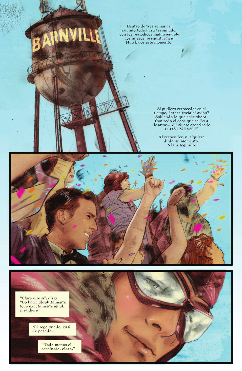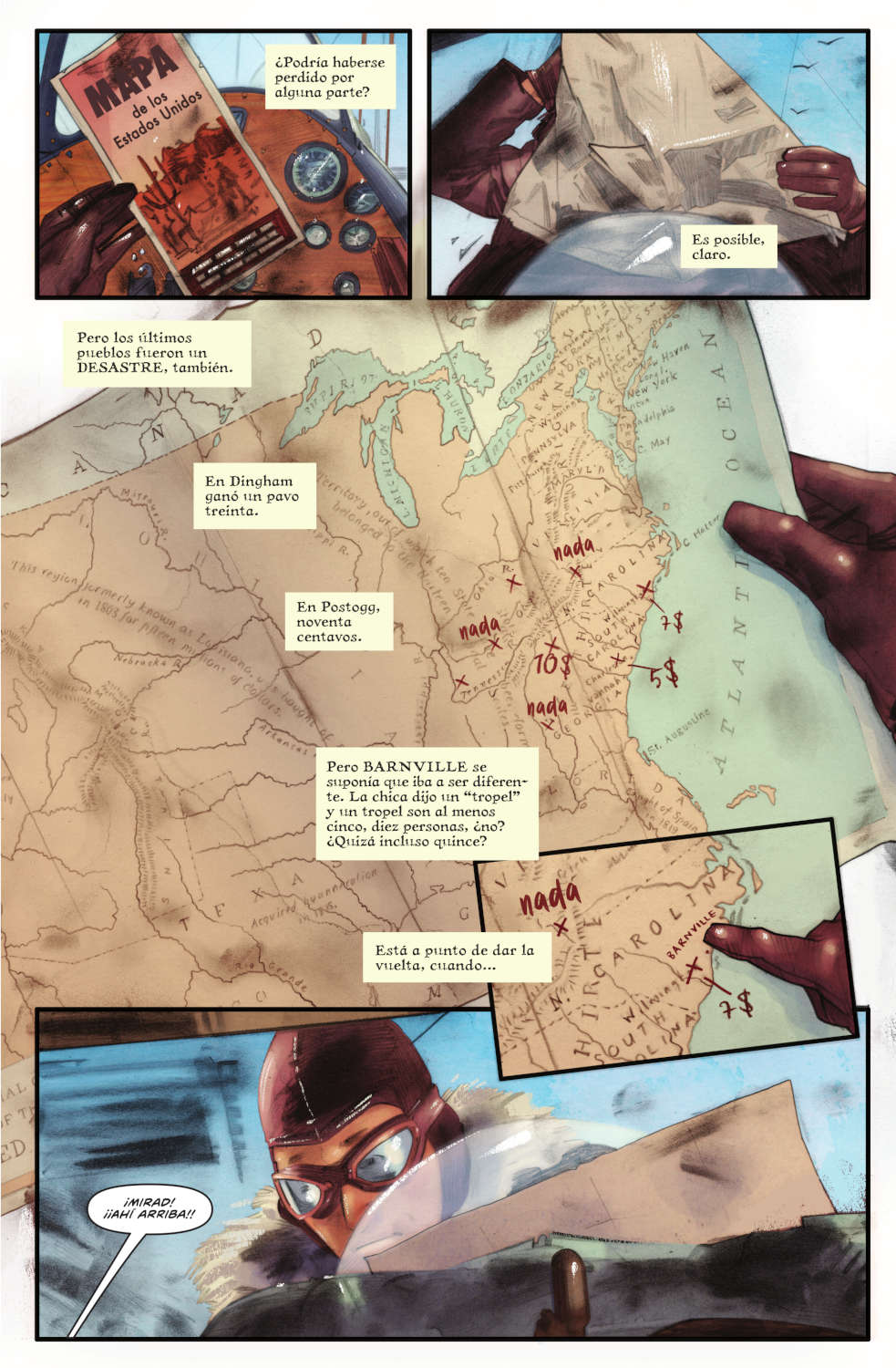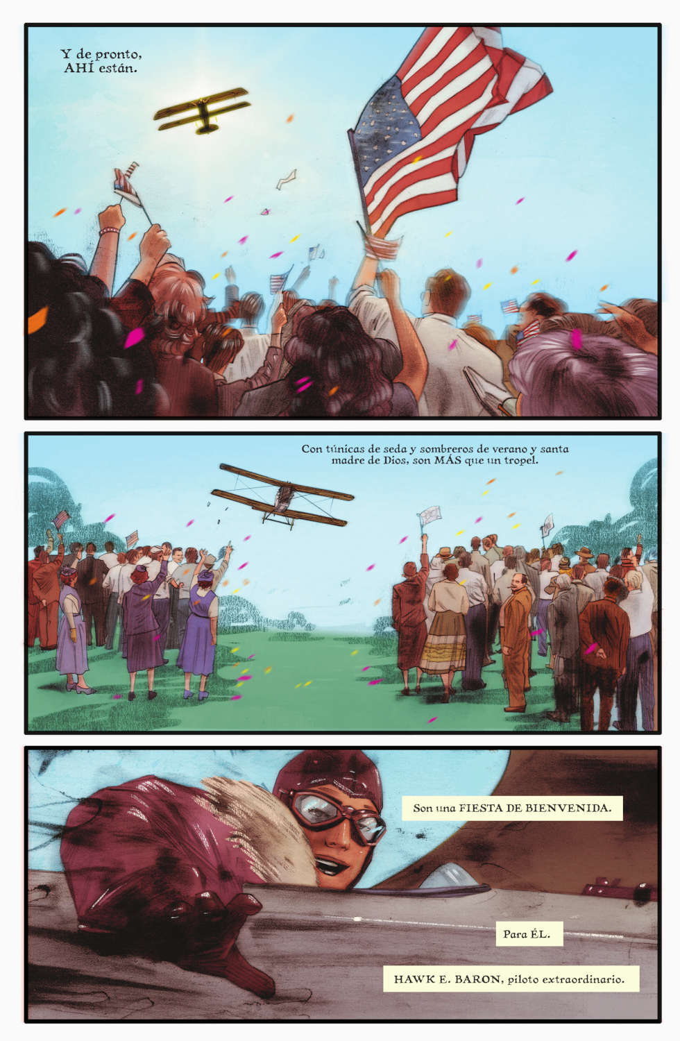 Para Snyder, autor de títulos tan celebrados como La noche del Gul, Clear, American Vampire o Batman: El tribunal de los búhos, la ambientación temporal es mucho más que un telón de fondo para la historia de Hawk y Tillie. “La Era del Jazz, que es el foco de Barnstormers, representa para mí esta especie de estratificación salvaje de la riqueza, donde los ricos están de fiesta después de una pandemia terrible —la gripe española— y una guerra mundial que acabó con gran parte de la población global. Y justo antes de que llegue el colapso económico y la Gran Depresión”, comentaba el guionista al portal especializado ComicsXF. “Es una época extraña, como un suspiro inquietante, donde la gente trabajadora vive una ansiedad enorme, incluso cuando surgen nuevos inventos que hacen la vida más emocionante. Pero debajo de eso hay una ansiedad latente: ¿En qué nos estamos convirtiendo?”
