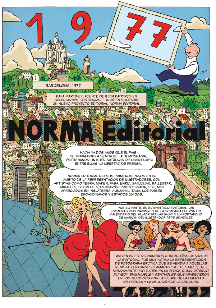 Corría el año 1977 cuando un joven de 27 años, Rafael Martínez, trabajaba como agente de ilustradores en la agencia Selecciones Ilustradas, recorriendo el globo con su portfolio de imágenes de los temas más populares de la época, como el western, romántico, aventura, terror... Imágenes que después poblarían las portadas de algunas de las novelas, películas o revistas más populares del momento en todo el mundo. Mientras tanto, España estaba inmersa en una etapa de cambios profundos, se celebraban las primeras elecciones libres de la democracia moderna y un gran abanico de oportunidades, aunque también de incertidumbres, se abría para todos. “Rafa”, como le conocen los que le tratan, pensó que era el momento propicio para dar el salto y crear su propio proyecto, una empresa de representación de autores que, además, pudiera editar las obras en forma de publicaciones impresas. Así nació Norma Editorial.