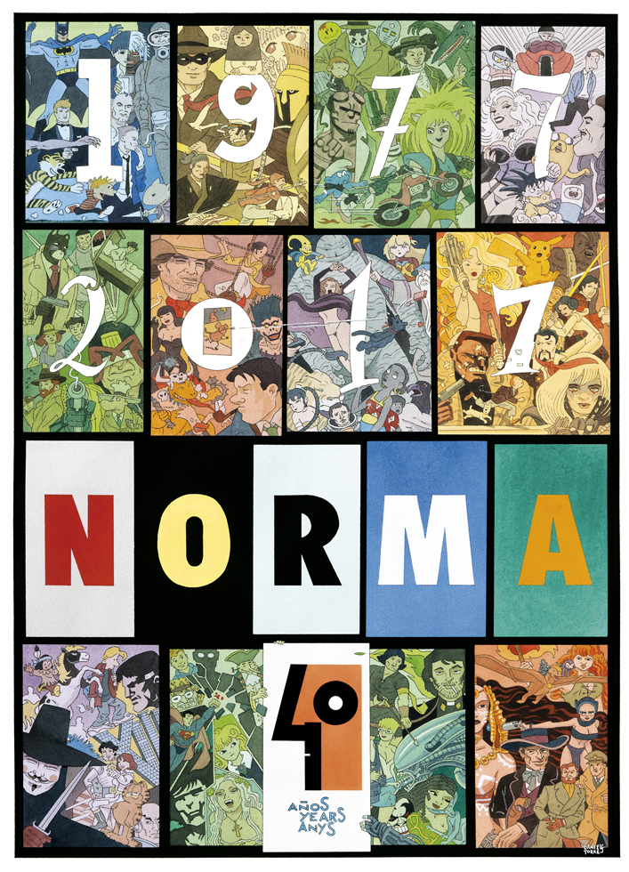 Este año 2017 celebramos el 40 aniversario de Norma Editorial en el marco del Salón Internacional del Cómic de Barcelona y hemos querido celebrarlo regalando a todos los visitantes de nuestro stand un cómic conmemorativo, realizado por Daniel Torres, en el que repasa nuestra historia y nos avanza cuál será nuestro papel en la industria del cómic del futuro. La obra se encuentra también disponible para su lectura online en la dirección: http://www.normaeditorial.com/40aniversario/