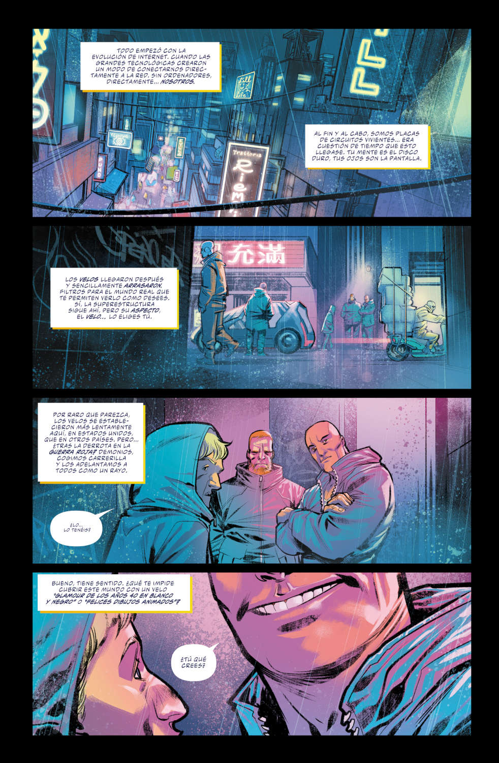 Todo surgió durante un viaje a Nueva York con mi familia para visitar a Scott y los suyos, donde empezamos a hablar de cómo podría ser el futuro para nuestros hijos. Como padres, siempre nos preocupa el mundo que dejamos atrás y cómo atravesarían una sociedad cuya percepción de la realidad está ligada a las creencias personales de la gente. Esta historia nació de esos temores y, toquemos madera, seguirá siendo una obra de ficción”.