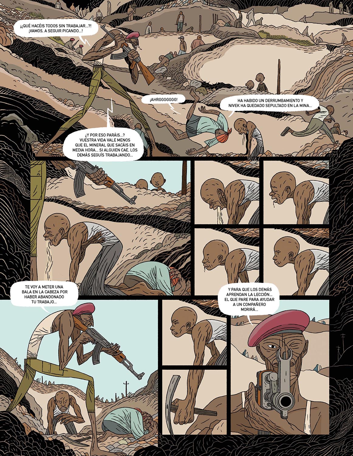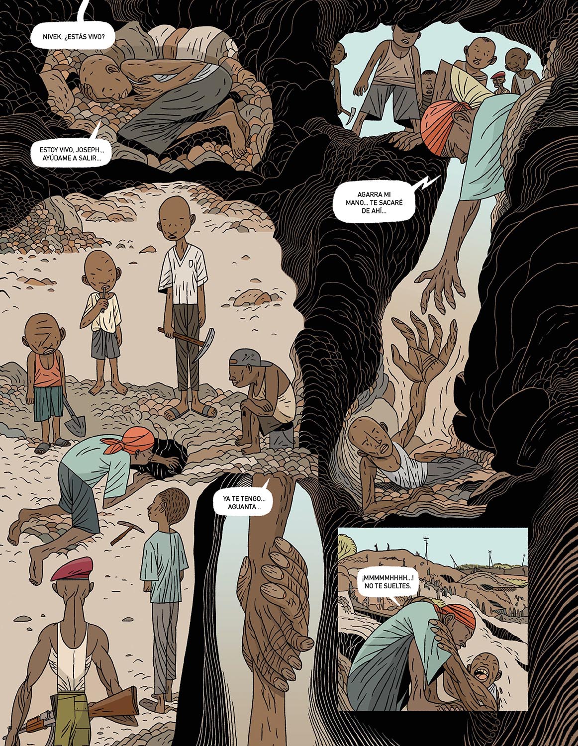 No es la primera vez que Antonio Altarriba (El arte de volar, El ala rota, Trilogía del yo) y Sergio García (Les trois chemins) suman sus talentos en una novela gráfica. Ya lo hicieron en Cuerpos del delito, donde exploraban la cara más oscura de la antigua Yugoslavia en los primeros años 90. Ahora vuelven a reunirse en una historia que combina una crudeza extrema, la necesaria para denunciar las citadas ignominias, con un tratamiento gráfico sencillamente deslumbrante, en el que el dibujante granadino -conocido, entre otros trabajos, por sus fabulosas portadas para The New Yorker- despliega su más amplio catálogo de recursos al servicio de un guion impecable.