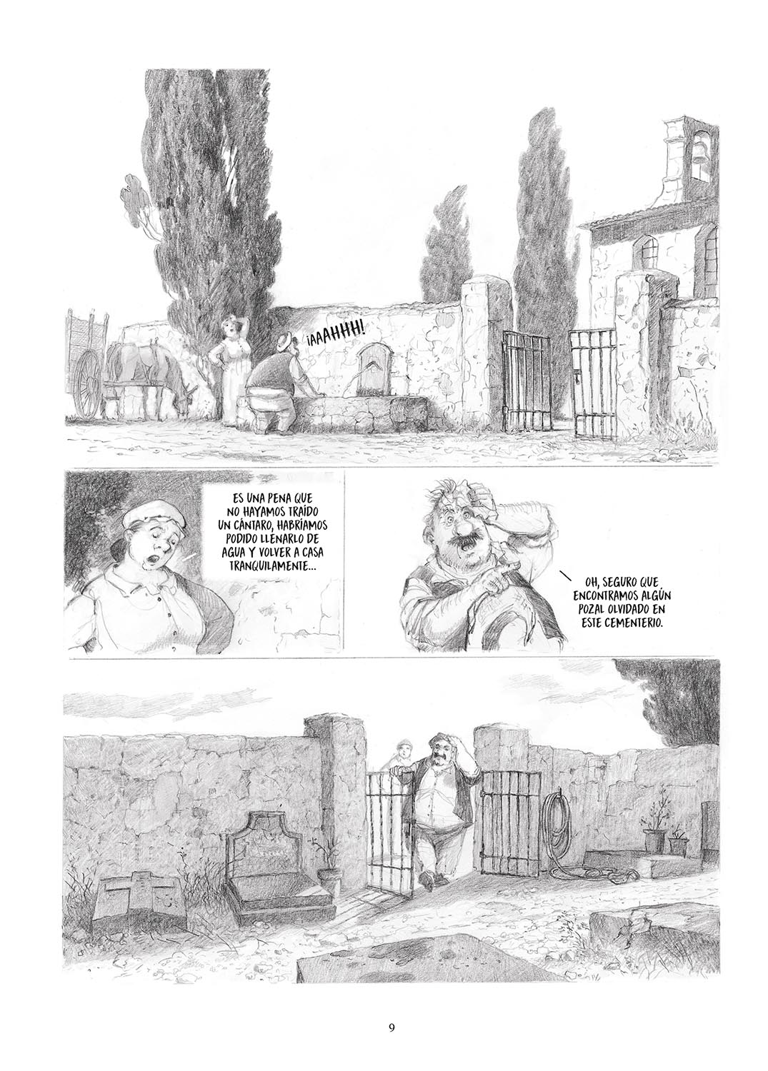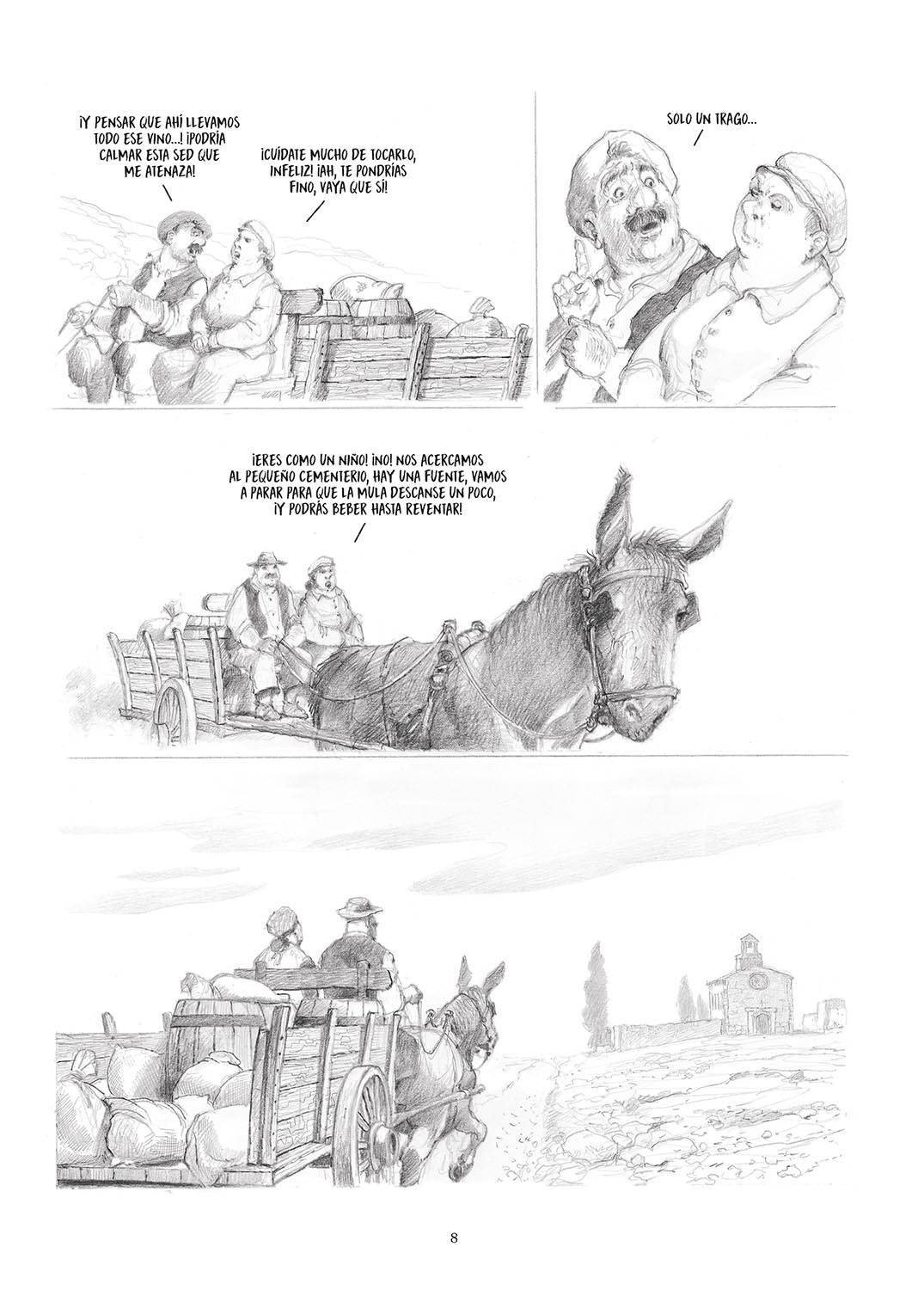 Tanto en los pocos momentos de dicha como en sus frecuentes caídas en desgracia, las aventuras y desventuras de don Alonso Quijano son plasmadas con el trazo magistral de unos artistas en estado de gracia, que pasan puntualmente del blanco y negro al color para recrear sus alucinaciones. “Don Quijote sublima la vida cotidiana, por tanto, nuestro dibujo también toma partido por esa poética con la aparición del color”, concluyen. “Por lo que respecta al estilo, el trazo se ha liberado un tanto. Hemos dibujado nuestras planchas con más espontaneidad, más libertad, diríamos, menos realismo en la apariencia de nuestros personajes que, nuevamente, debían ser caricaturescos en consonancia con el tono de la historia”. Y sobre todo ello, prevalece el disfrute: “Don Quijote no es serio, porque Cervantes tampoco lo es. Se divierte con su personaje. Nosotros también nos hemos divertido”.