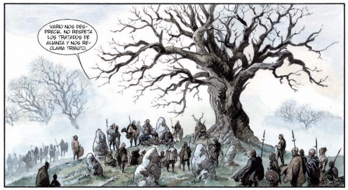 En la cuarta, el celebérrimo guionista y dibujante nos presenta a Marco y Arminio al borde del enfrentamiento. Infiltrado entre las tropas romanas destinadas en Germania, Marco traicionará al Imperio y llamará a la defensa del pueblo de sus padres.