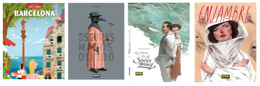 Todo sobre... Barcelona, una gran manera de que grandes y pequeños conozcan los lugares más emblemáticos de la ciudad. En Las oscuras manos del olvido, conoce a un mafioso que tiene que cumplir la promesa de encontrar a un miembro de ETA y acabar con él. Descubre las peripecias de un escritor marcado por la tragedia en Los últimos días de Stefan Zweig, conocerás los entresijos de la vida de este gran artista y su mujer. Además de Enjambre, una antología de cómics y relatos realizado solamente por autoras.