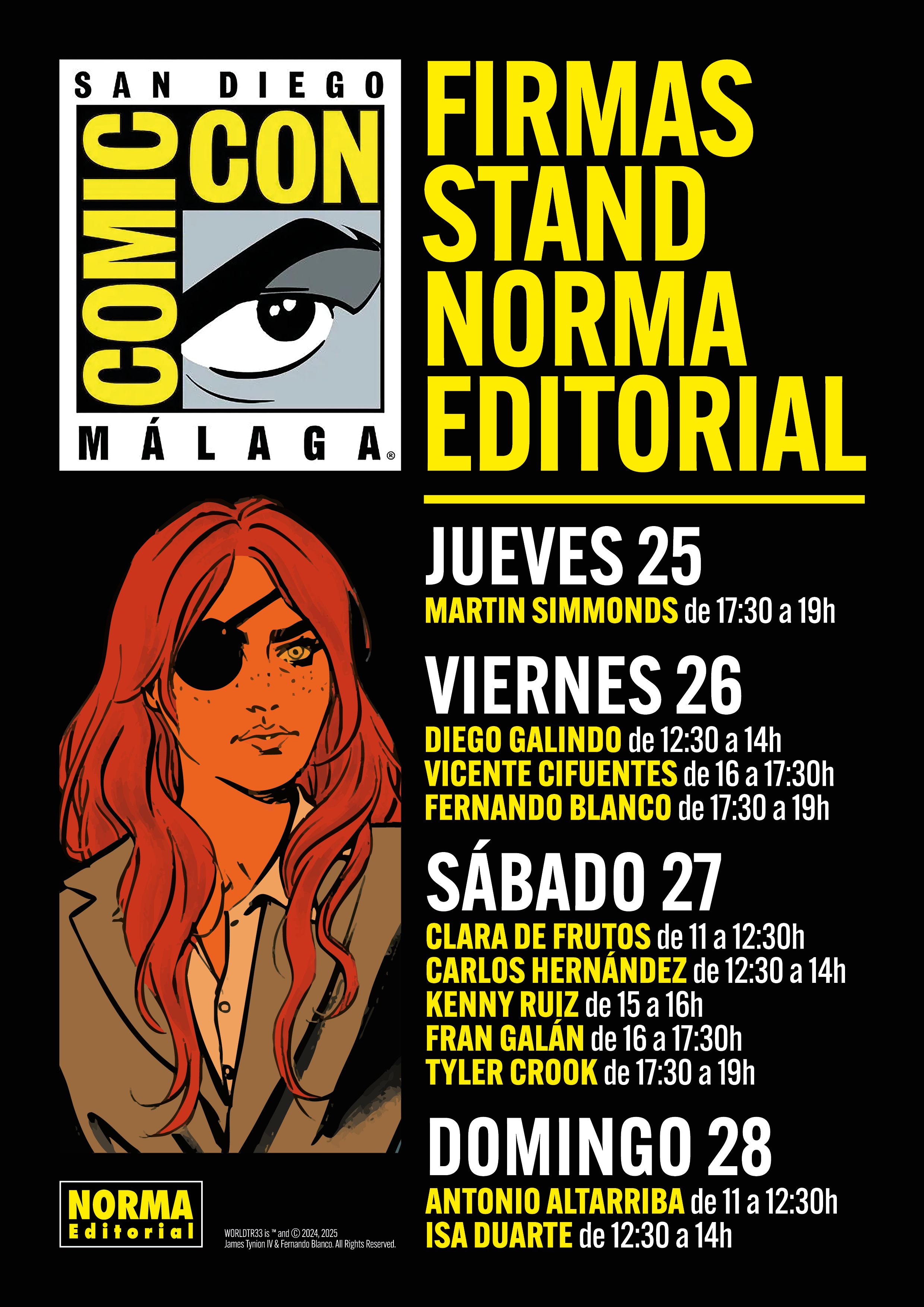 ¡La Comic-Con llega a España! Del 25 al 28 de septiembre se celebrará el mayor encuentro de cómic en Málaga con invitados muy especiales. Como no podía ser de otra manera, nosotros estaremos presentes y tendremos a varios autores firmando. En la imagen tenéis toda la información de los horarios: