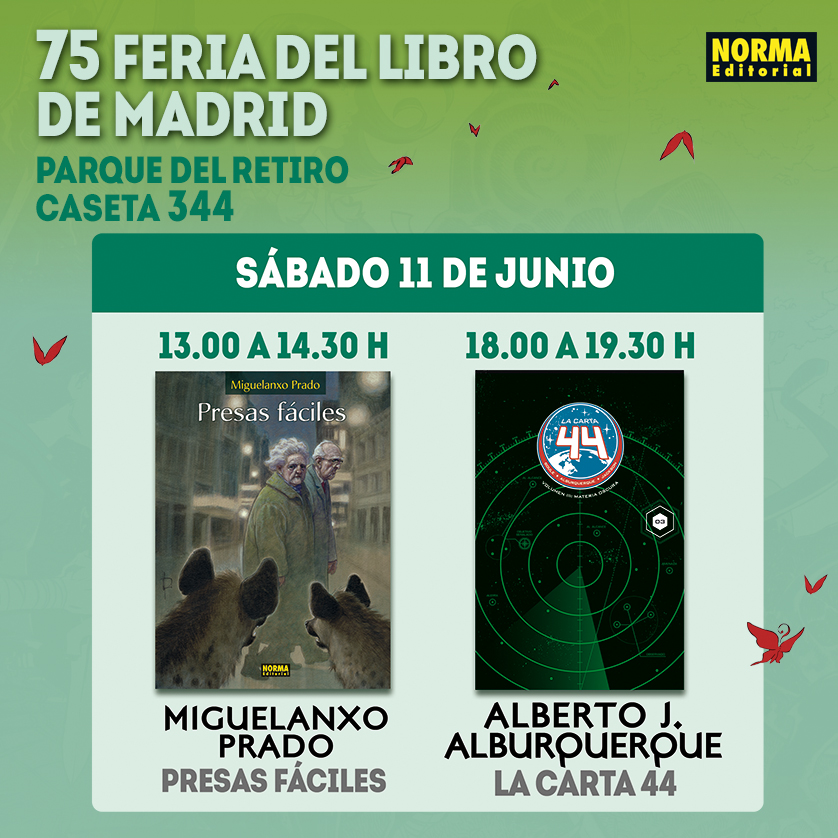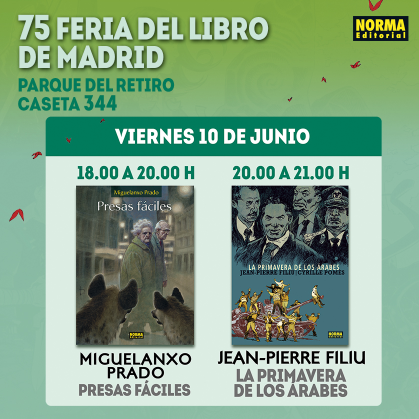Ya se acerca otro de los grandes acontecimientos de la literatura y el cómic de España. Durante tres fines de semana se celebra la 75ª Feria del Libro de Madrid y algunos de nuestros autores estarán allí firmando sus obras. ¡No dudéis en ir a conocerlos a la caseta 344! ¡Os esperamos!