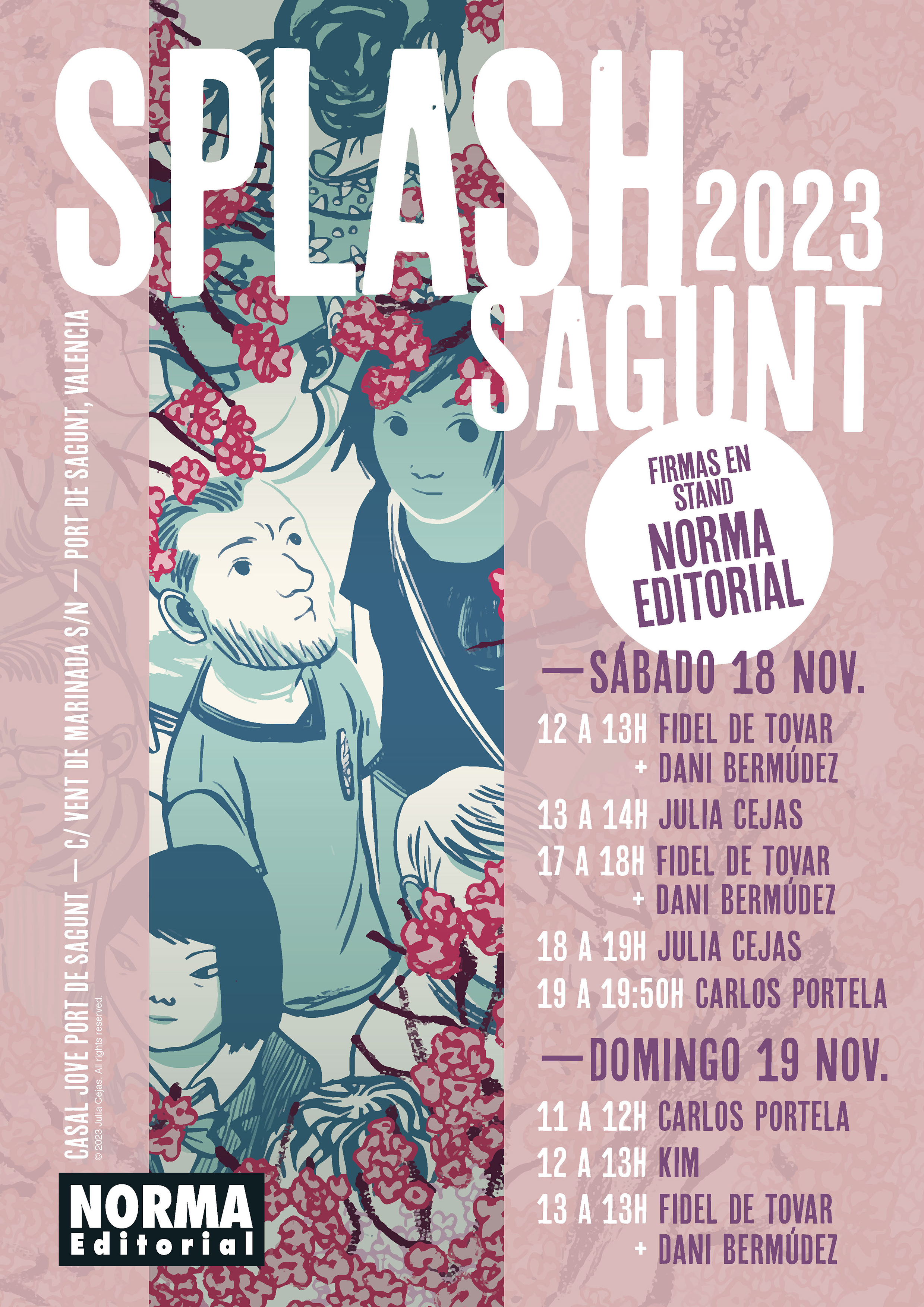 El fin de semana del 18 y 19 de noviembre se celebra una nueva edición del Splash Sagunt, nosotros tendremos un stand donde habrá sesiones de firmas de Fidel de Tovar, Dani Bermúdez, Julia Cejas, Kim y Carlos Portela. En la imagen tenéis toda la información de los horarios.