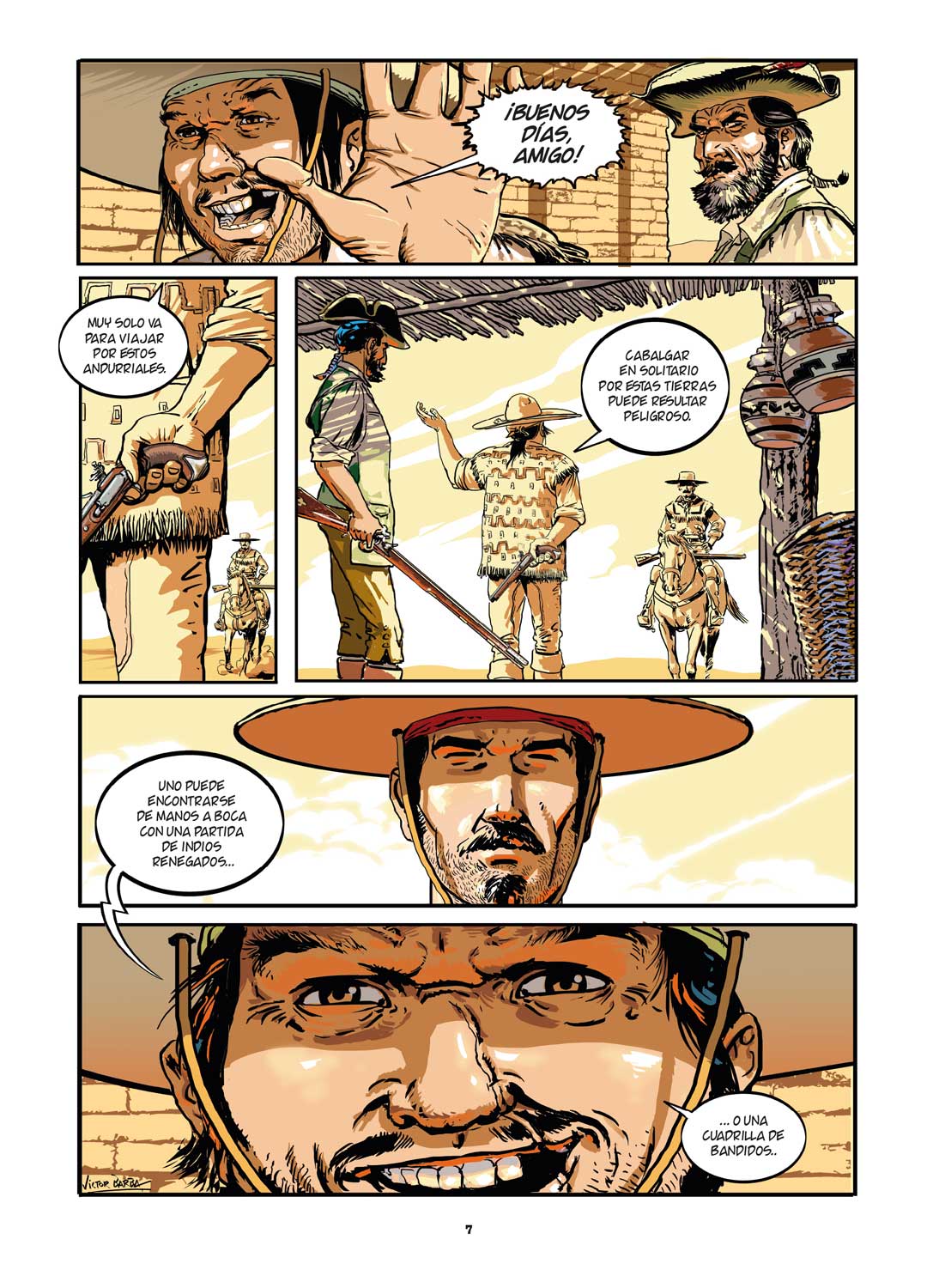 Con un dibujo realista y fiel al pasado histórico, y un ritmo digno del mejor western, Víctor Barba plasma aspectos muy poco divulgados de la presencia de los españoles en el continente, al tiempo que impugna la leyenda negra que “Calculada y sistemáticamente se cubre de falsedades cualquier empresa que el Imperio español lleve a cabo, se minimizan los logros obtenidos en ellas, se exageran los hechos negativos (que los hubo) encubriendo los propios y se tiñen de todo tipo de vituperios tanto el carácter como lo que dan en llamar ‘origen de la raza española’”.