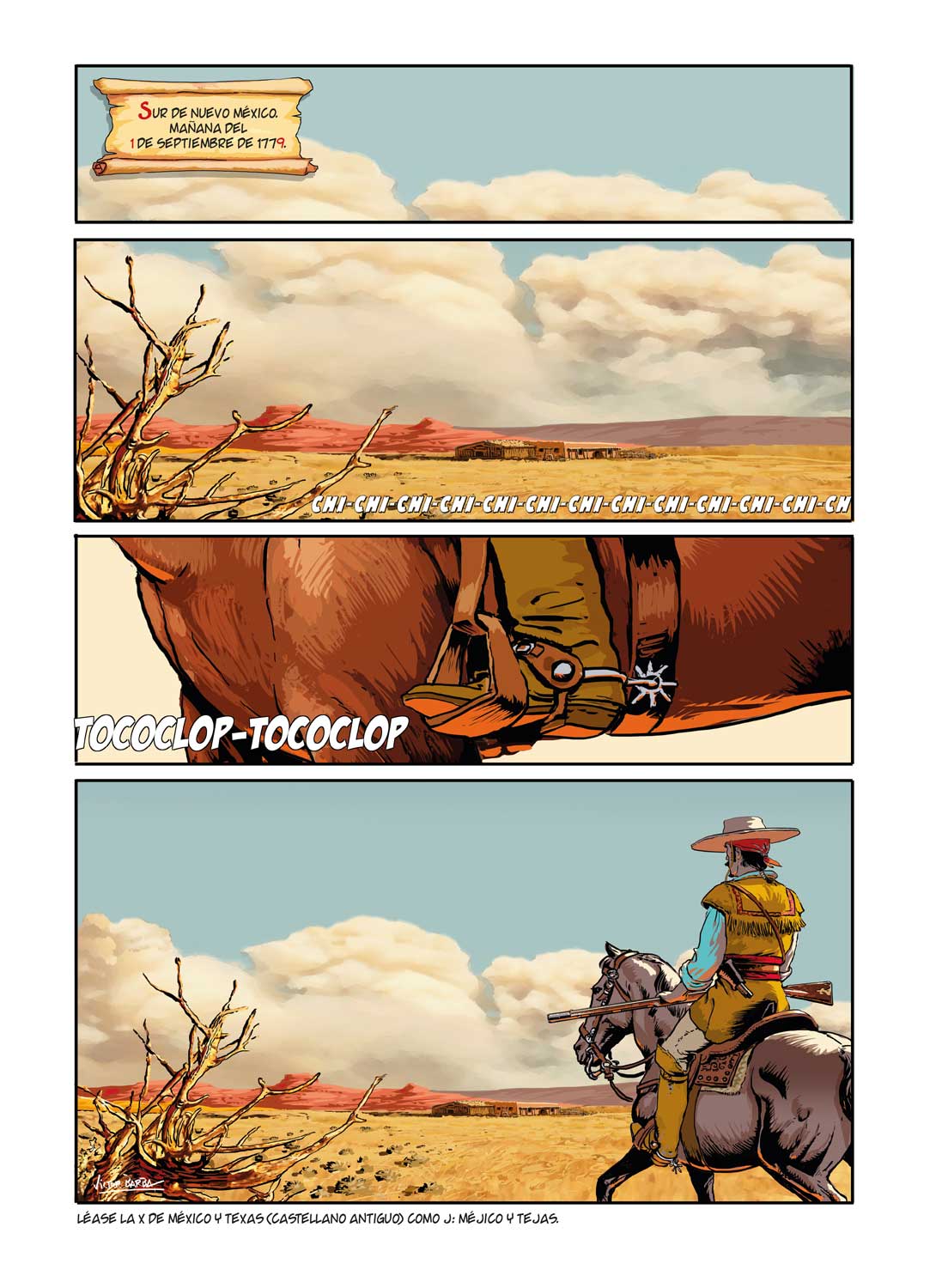 “Antes de que en el siglo XIX se produjera la expansión anglosajona hacia los territorios del Oeste y el Sur de América del Norte, la presencia española en todo el continente llevaba implantada más de 300 años”, explica Barba en el aparato documental aportado al final del volumen. “Con las luces y sombras propias del momento histórico, y los usos y costumbres de la Humanidad en esa época, se va construyendo durante ese tiempo un entramado económico y social, a menudo no exento de luchas, en el que tiene capital importancia el mestizaje entre los pueblos indígenas y los pobladores españoles”.