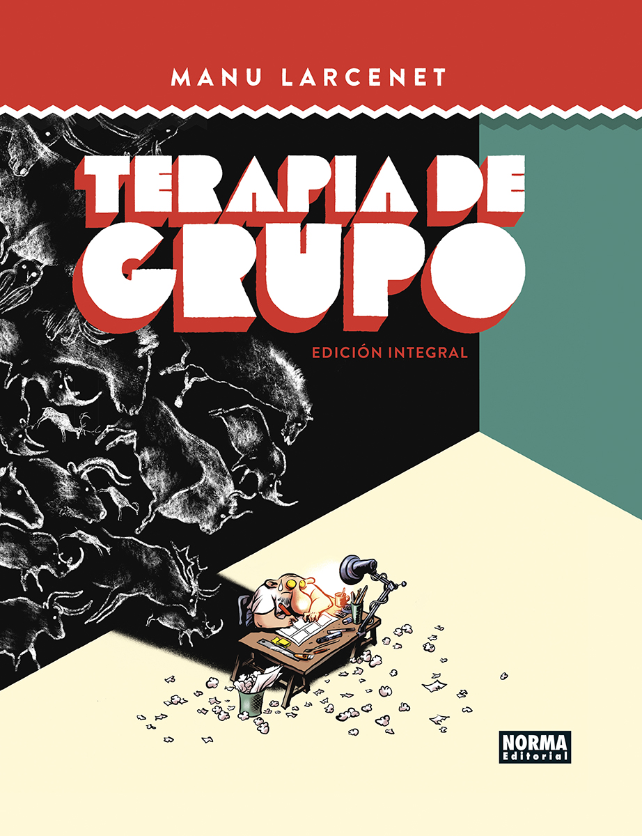 El bloqueo mental, la falta de inspiración o el terror a la página en blanco han sido motivos recurrentes a lo largo de la historia de la literatura y del arte. Escritores, dibujantes y pintores han querido así convertir una situación adversa en material productivo, al tiempo que reflexionaban sobre los misteriosos mecanismos de la creación. Y eso es lo que hace magistralmente el francés Manu Larcenet en Terapia de grupo, una obra magna que ve ahora la luz en España, en edición integral, de la mano de NORMA Editorial.