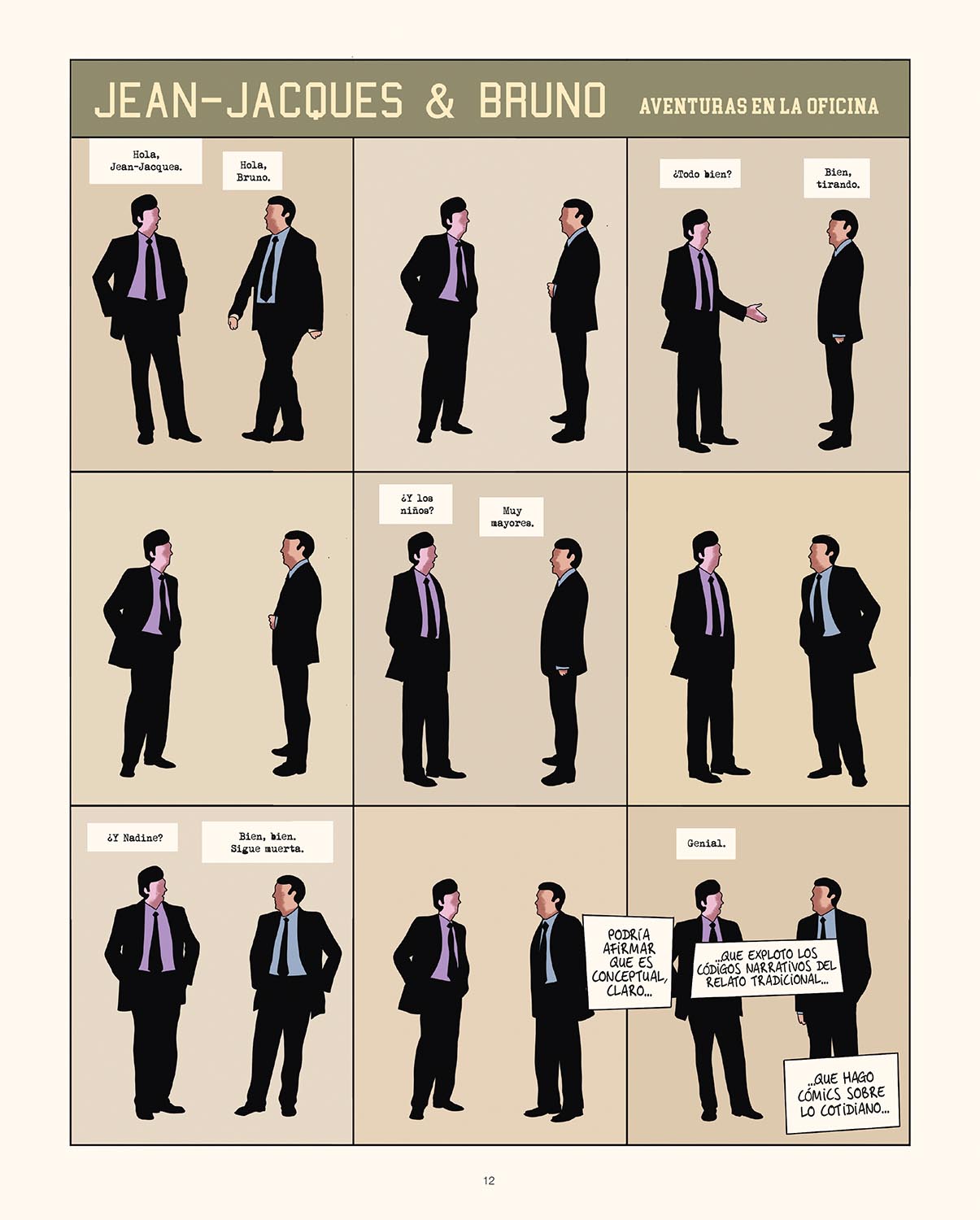 El dibujante contaba así a France Culture el proceso de esta obra. “A diferencia de lo que he hecho últimamente, esta vez se trata de una improvisación total hasta el final con Terapia de grupo, es decir, dibujo una página, doy vueltas alrededor de mi mesa durante tres o cuatro días, y si funciona tanto mejor. Lo pruebo todo al impulso de la emoción artística”, comenta.