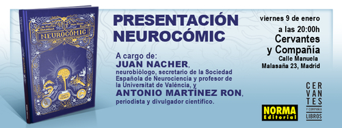 Mañana tenéis una cita a las 20:00 horas en la Librería Cervantes y Compañía de Madrid (c/ Manuela Malasaña nº 23) con la presentación del NEUROCÓMIC, una magnífica novela gráfica realizada por el Dr. Matteo Farinella y la Dra. Hana Ros.