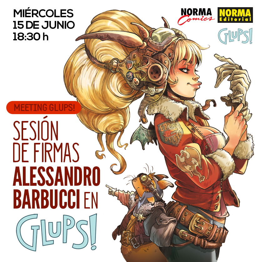 Hoy, el dibujante italiano, Alessandro Barbucci, conocido por su trabajos en Sky·Doll y Ekhö Mundo Espejo estará firmando hoy en la Glups! de Norma Comics (Passeig de Sant Joan, nº 7, Barcelona) a partir de las 18:30. ¡No os podéis perder esta oportunidad!