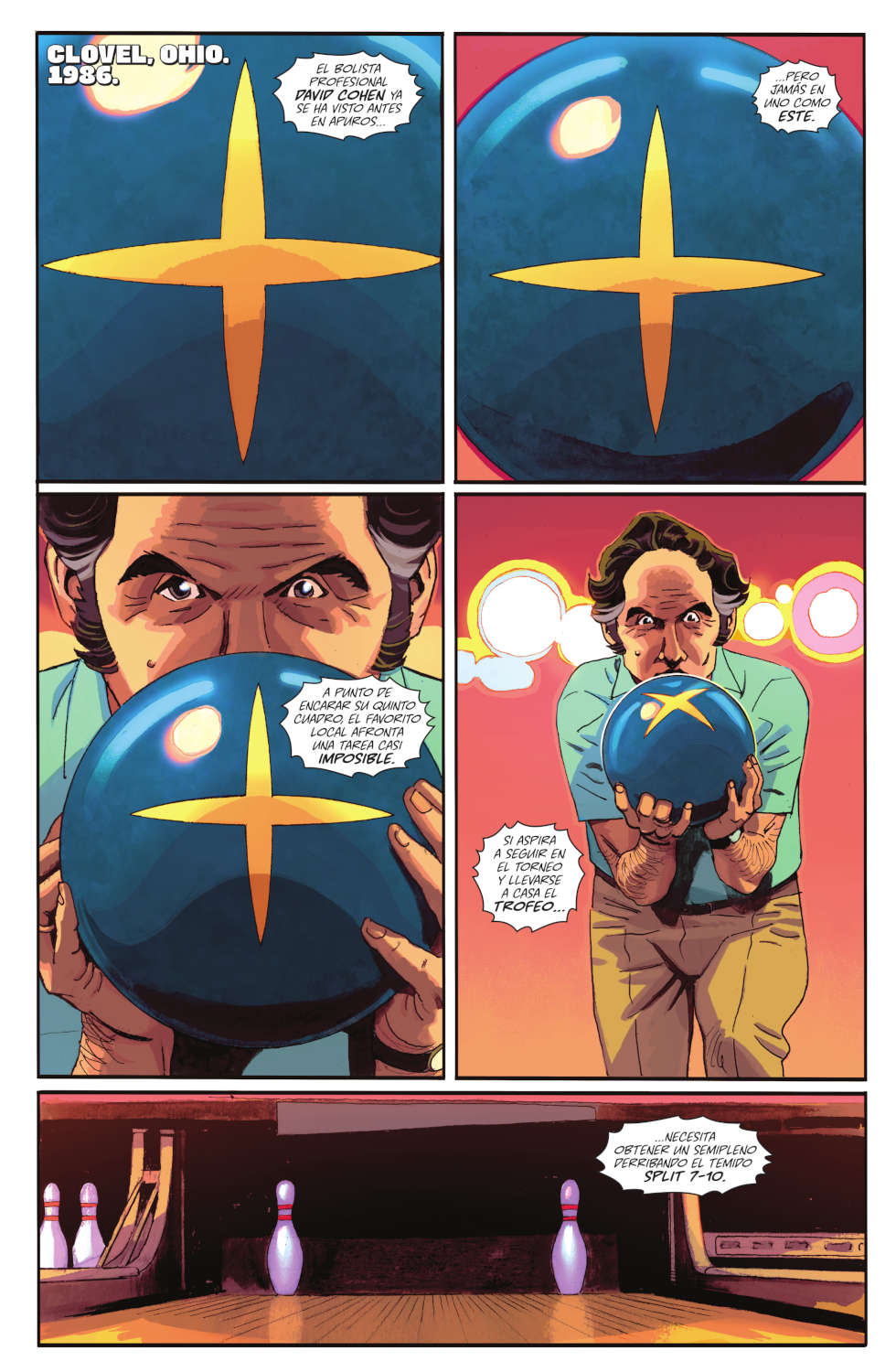 Según ellos mismos afirman, la idea de TheHoly Roller surgió como una respuesta natural al auge del extremismo en Estados Unidos. “Joe me contó que, siendo un chico judío en una zona de Chicago, sufría antisemitismo con bastante frecuencia”, explicaba Remender al portal CBR. “Al hablar de eso, me dijo que solía lidiar con el acoso escolar yendo a la bolera para desahogarse”. Así surgió la figura de un justiciero accidental, un hombre corriente que se ve abocado a hundir algunas cabezas para impedir el triunfo del mal. Este personaje no es otro que Levi Coen, ex jugador de bolos al que la enfermedad de su padre le obliga a renunciar al trabajo de sus sueños y regresar a su ciudad natal, la misma que –según descubrirá muy pronto– ha sido invadida por neonazis.