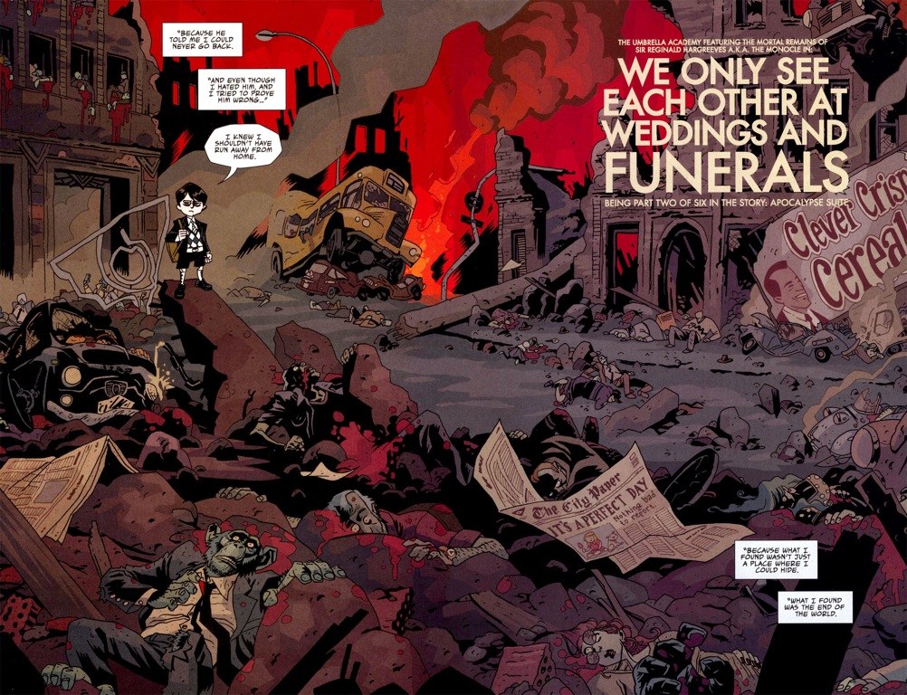 The Umbrella Academy: Suite Apocalíptica es una espléndida obra que mezcla conflictos familiares, drama, acción y muerte de forma magistral. Un enorme trabajo de Gerard Way, exlíder de la popular banda My Chemical Romance, en los guiones y Gabriel Bà en los dibujos. Cabe decir que los colores fueron realizados por el inigualable Dave Stewart. Sin duda, estamos ante una obra con un aire inspirado en Mike Mignola y su arte.