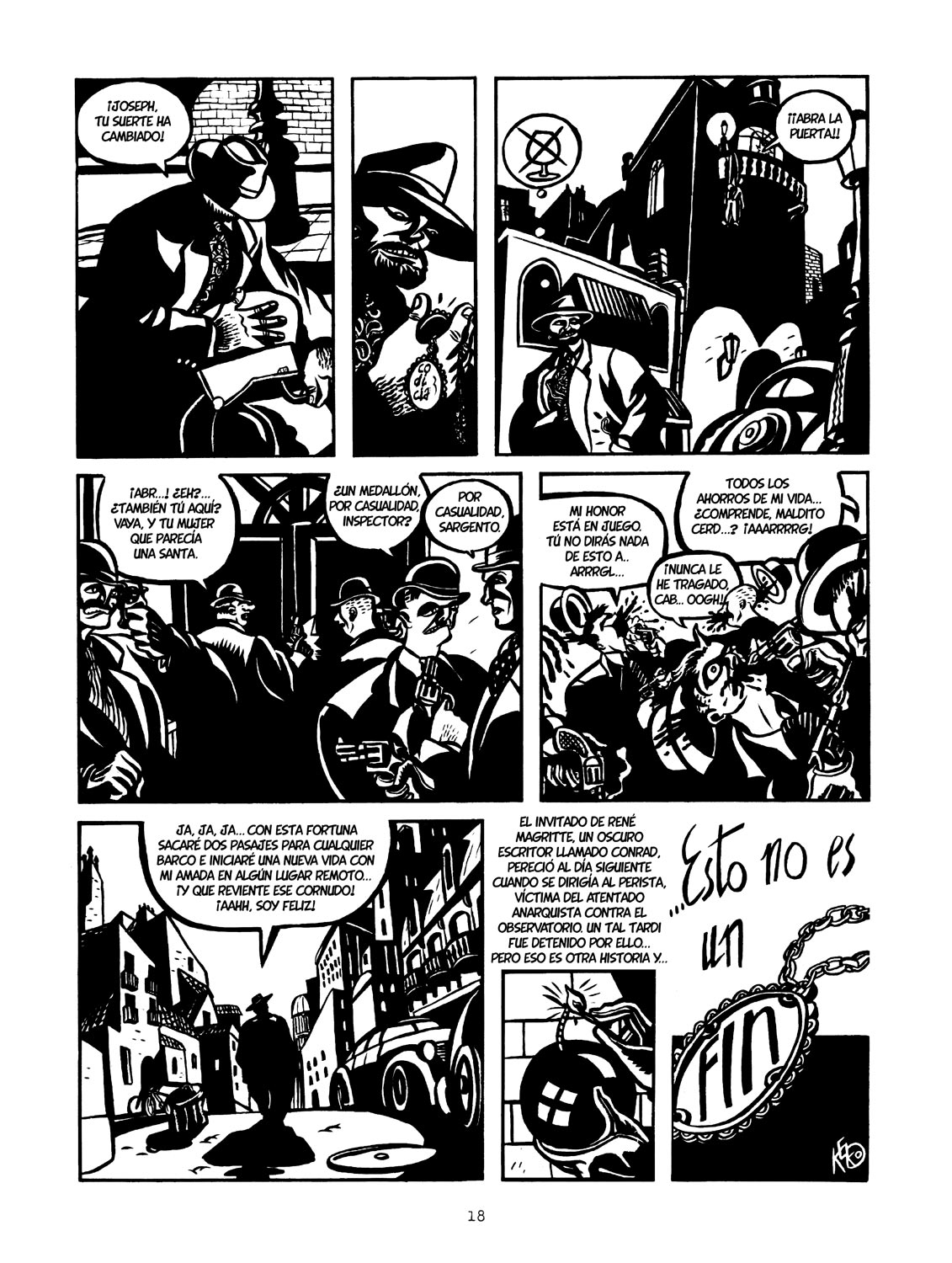Álvaro Pons y Noelia Ibarra, codirectores de la Cátedra de Estudios del Cómic Fundación SM-UV pero, sobre todo, experimentadas eminencias con toneladas de páginas de cómic no sólo leídas, sino analizadas a lo largo de sus carreras profesionales, han escrito “Mirar al abismo de una mancha de tinta”, el revelador prólogo incluido en este Todo al negro. Keko: 1985-2012 y sus palabras no dejan lugar a dudas: “abróchense los cinturones porque la mancha de negro de Keko es resbaladiza y peligrosa. Su borde afilado deja heridas, esos cortes finos y casi imperceptibles que escuecen y no sanan, permanecen abiertos y nos distraen mientras la oscuridad de la tinta captura nuestra alma. Sus primeras historietas, en la añorada revista Madriz, ya dejaban claro que el blanco y negro sería el protagonista absoluto de su obra, contundente y brutal, sin concesión alguna a quien se acerque a sus páginas, abducido por ese contraste impío entre la absoluta luminosidad y la oscuridad infinita”.